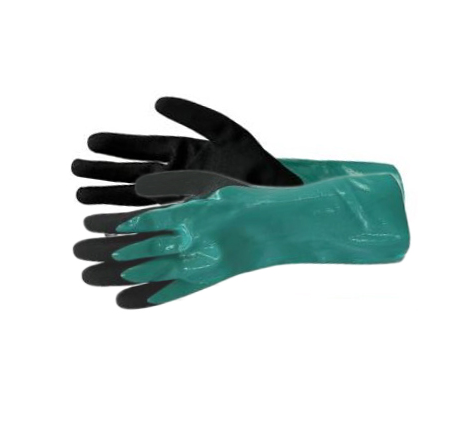 - Green Nitrile Dipped Two-Layer Green/Black Sandy Nitrile Coating Gloves